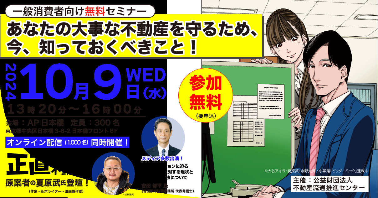 セミナー登壇者はあの正直不動産原作者の夏原武氏、不動産を専門とする吉田豊弁護士です!
